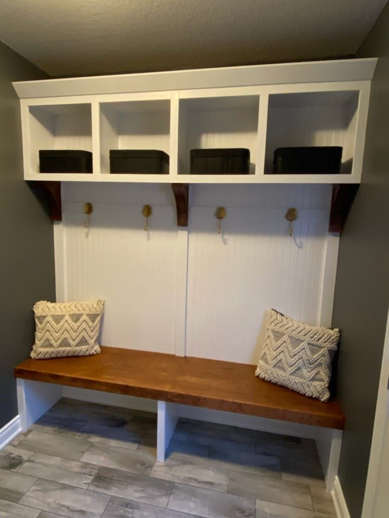 A striking contrast of white risers and rich wood tones, built to stand out while blending with the home’s interior.