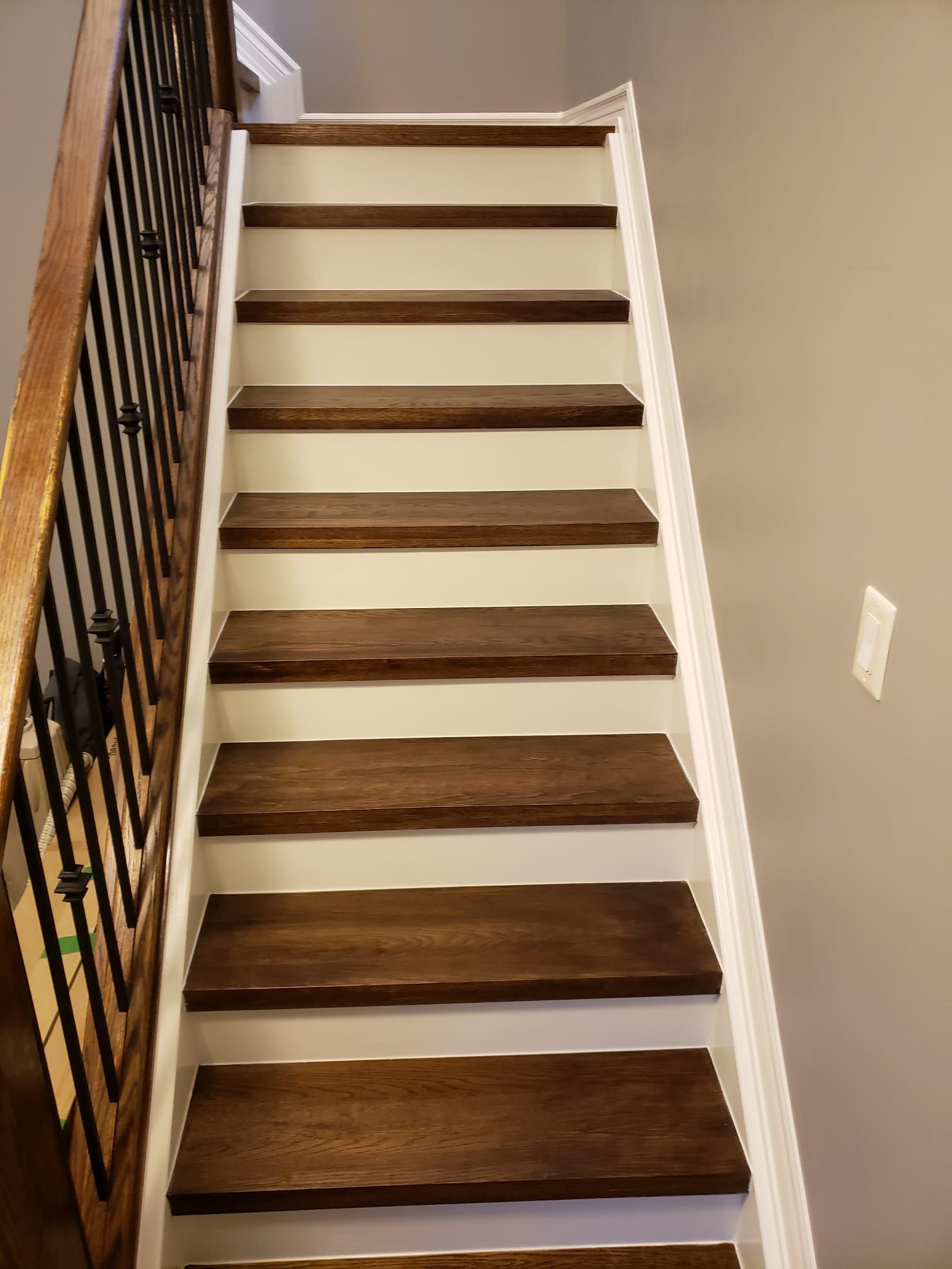 Dark stained steps and modern black railings turn a standard staircase into a standout feature.